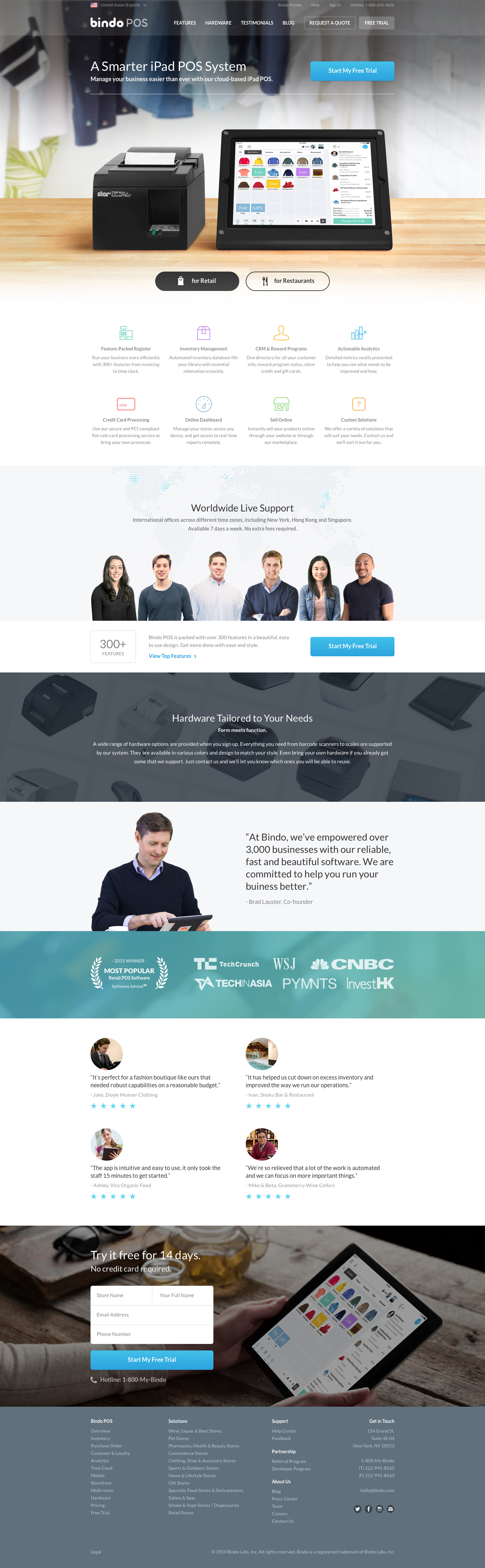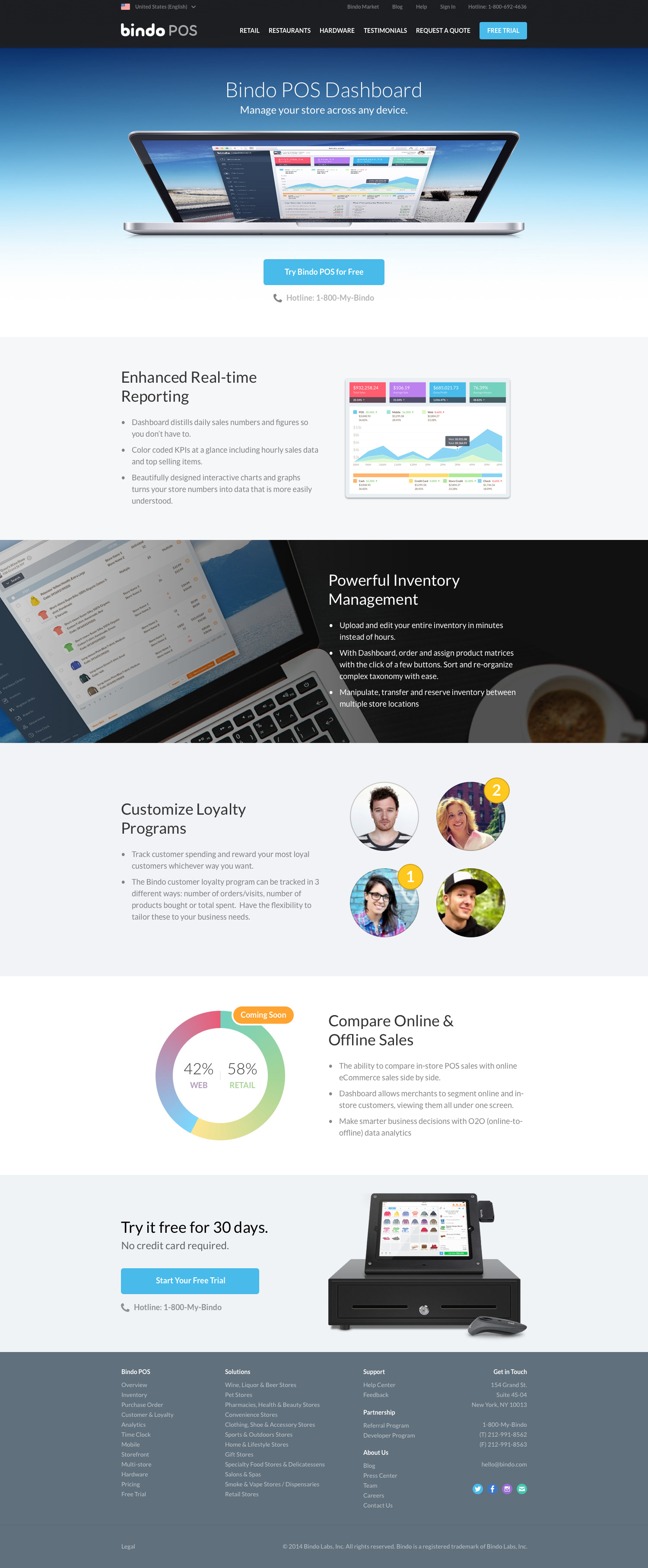 Constraints: directing visitors to either one of the product pages (they are either interested in the system made for restaurants or retail shops, not both), visitors may be using any device to view the website